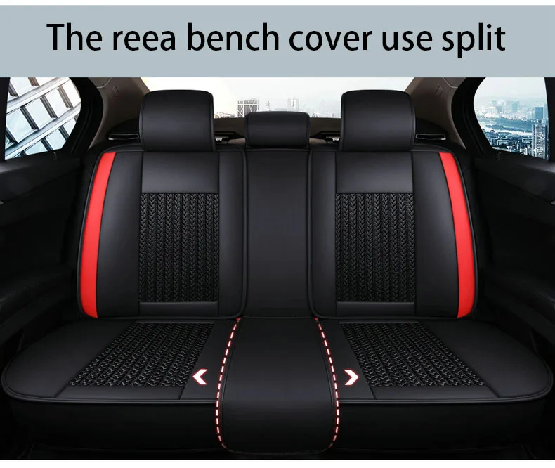 PU Leather 5 Seats Full Set Car Seat Cover Fine Needlework Ice Silk Car Seat Cushions